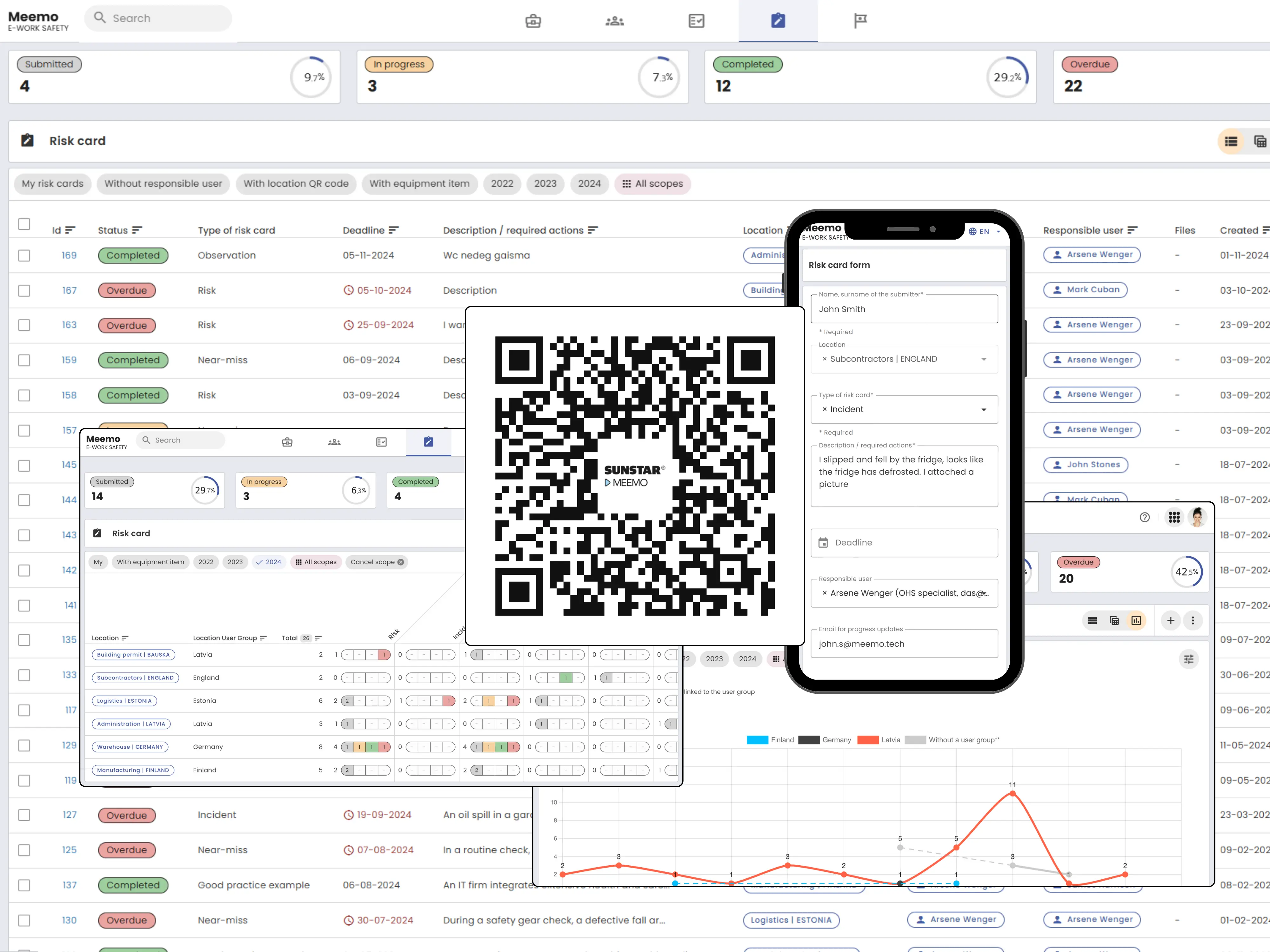 Ziņojiet par bīstamām situācijām, izmantojot darba vidē pieejamos QR kodus. Pieprasījumi tiek apstrādāti centralizēti.