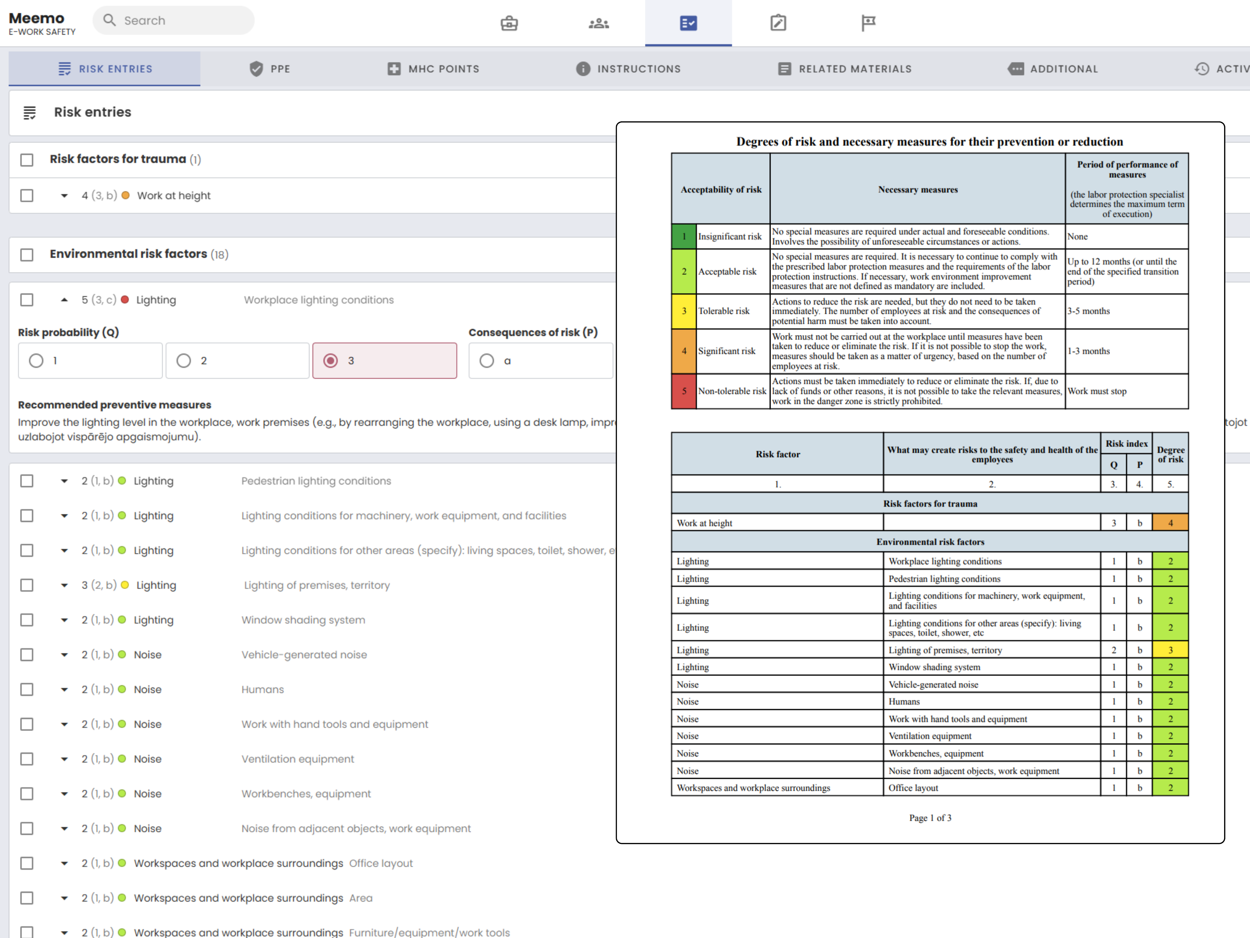 Izvērtējiet darba vietas riskus, identificējiet potenciālos apdraudējumus un nosakiet preventīvus pasākumus.