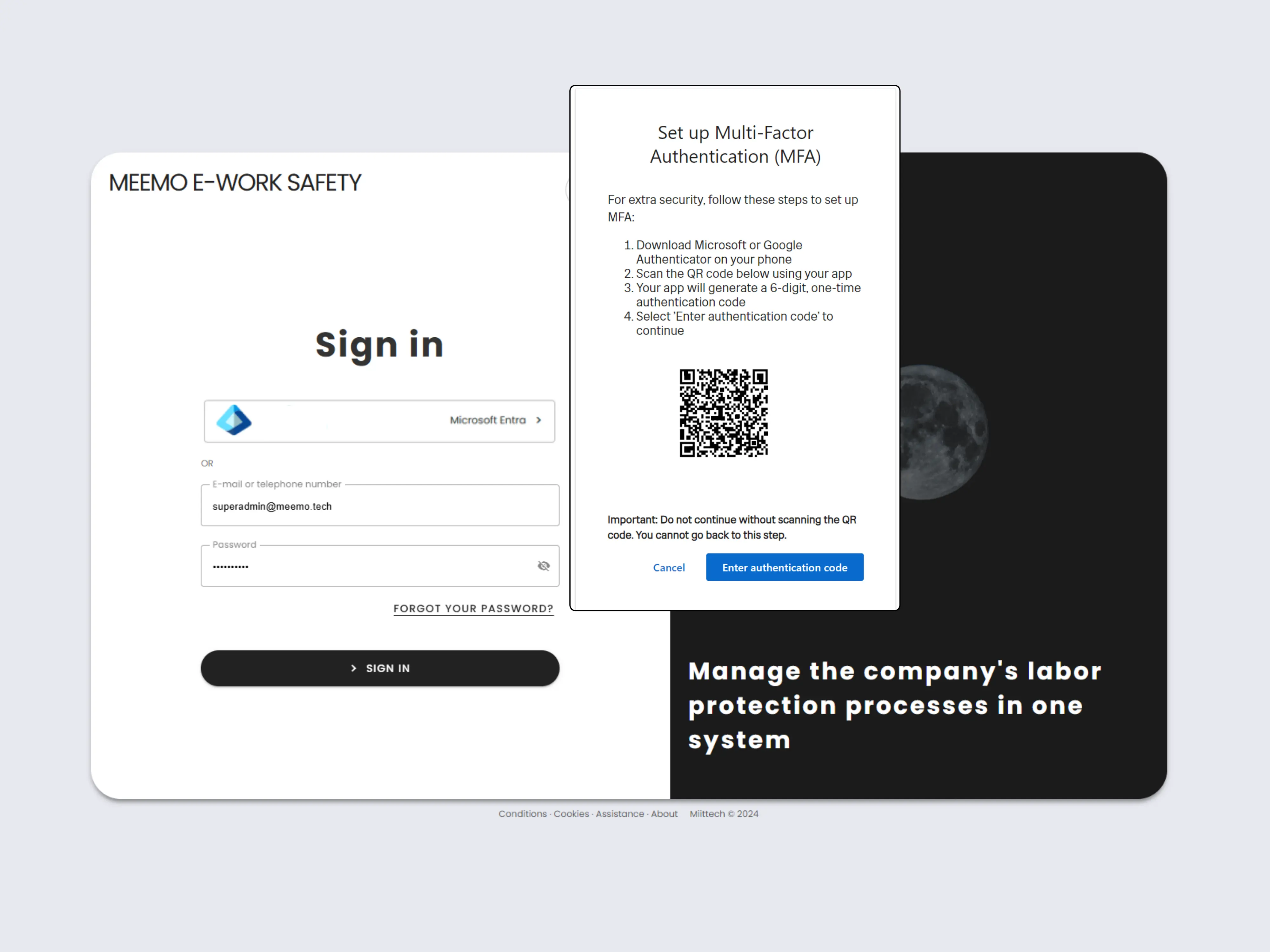 Pieslēdzieties sistēmai, izmantojot SSO, e-pastu vai tālruņa numuru. Papildu drošībai— 2FA.